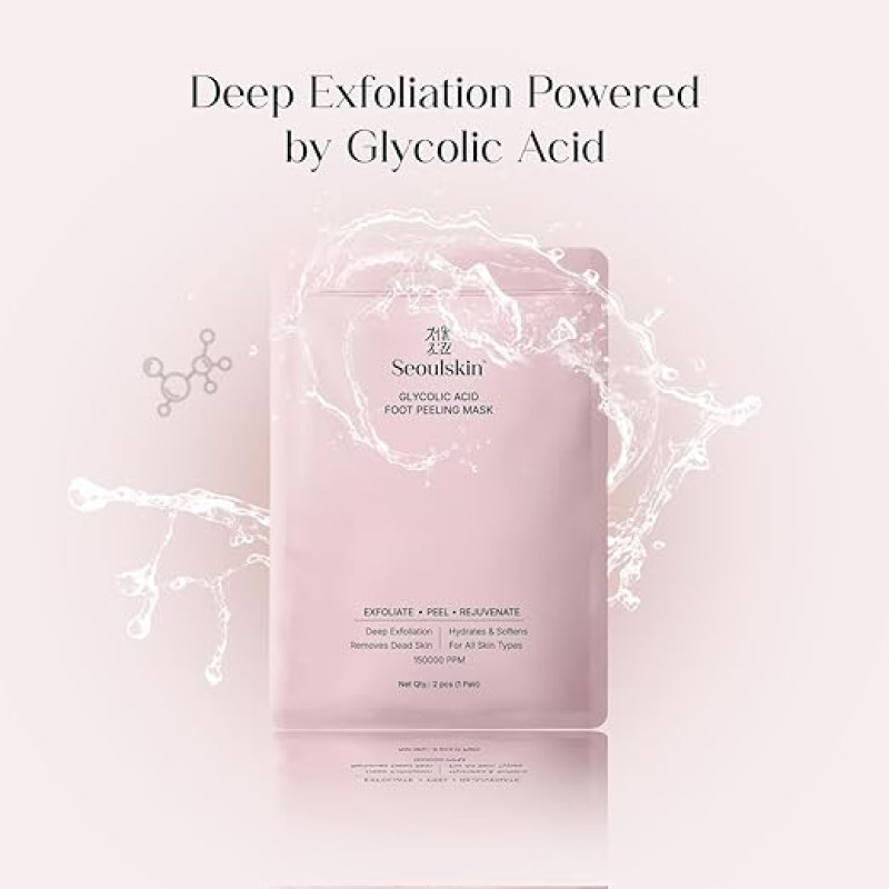 SeoulSkin Glycolic Acid Foot Peeling Mask (1 Pair), Korean Peeling & Exfoliating | Deep Exfoliation with Glycolic Acid, Removes Dead Skin, Cruelty-Free, Foot Peel Off Mask