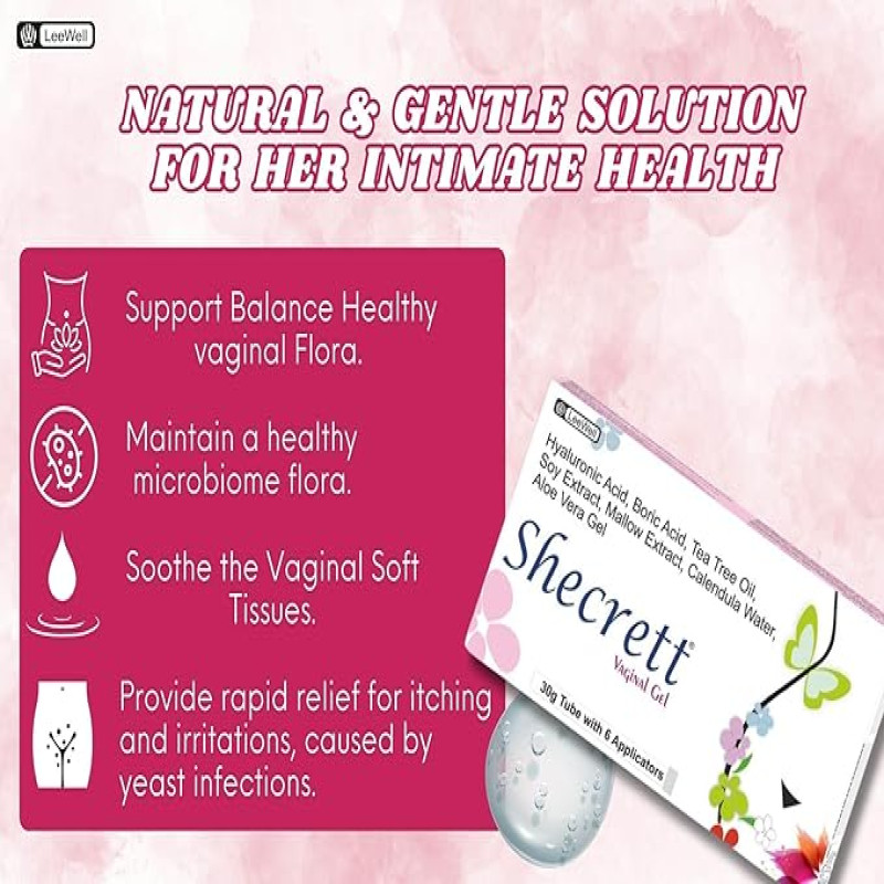 Shecrett Vaginal Gel | Veginal Infection Care Cream | Itching, Irritation, Dryness & Smell Relief | Intimate Hygiene Wash | Yeast Infection Cream | Hyaluronic Acid, Soy Extract, Mallow Extract | Boric acid Cream for Women | Calendula Water, Tea Tree Oil,