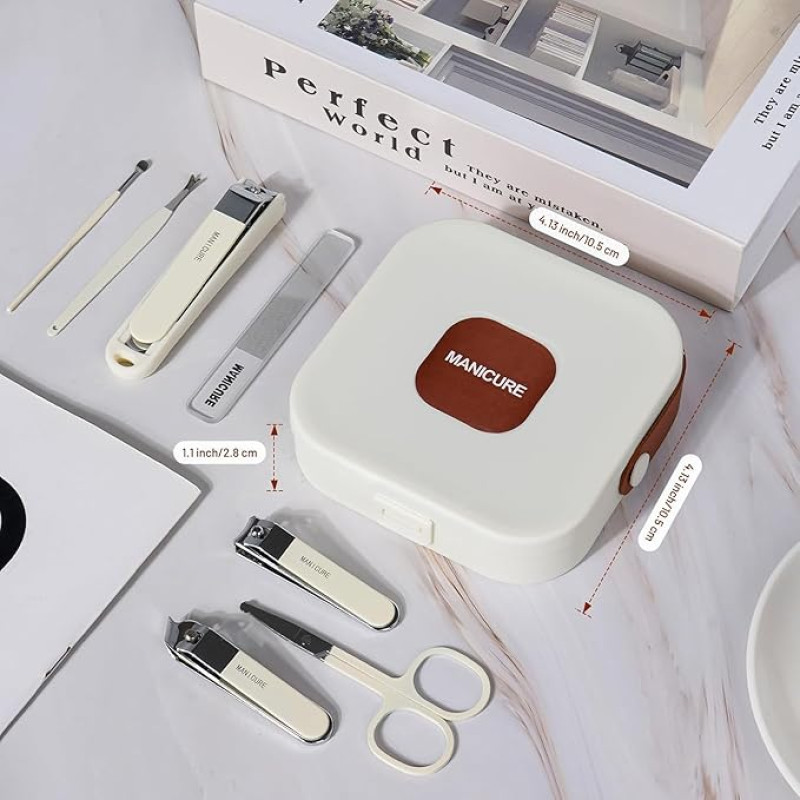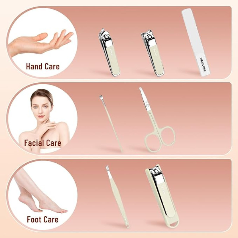 SHOPPOSTREET Nail Clippers Set 7 Pieces Stainless Steel Professional Grooming Kits, Fingernail and Toenail Clipper Cutters with Luxurious Travel Case Nail Care Tools Manicure Pedicure Kit (Beige)