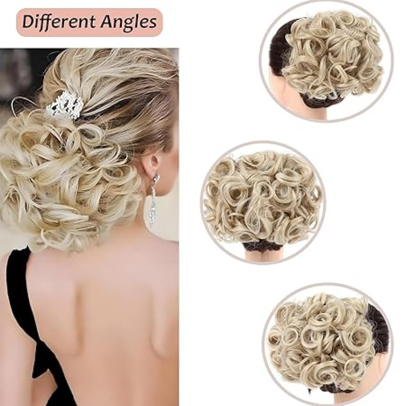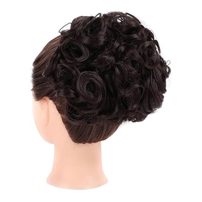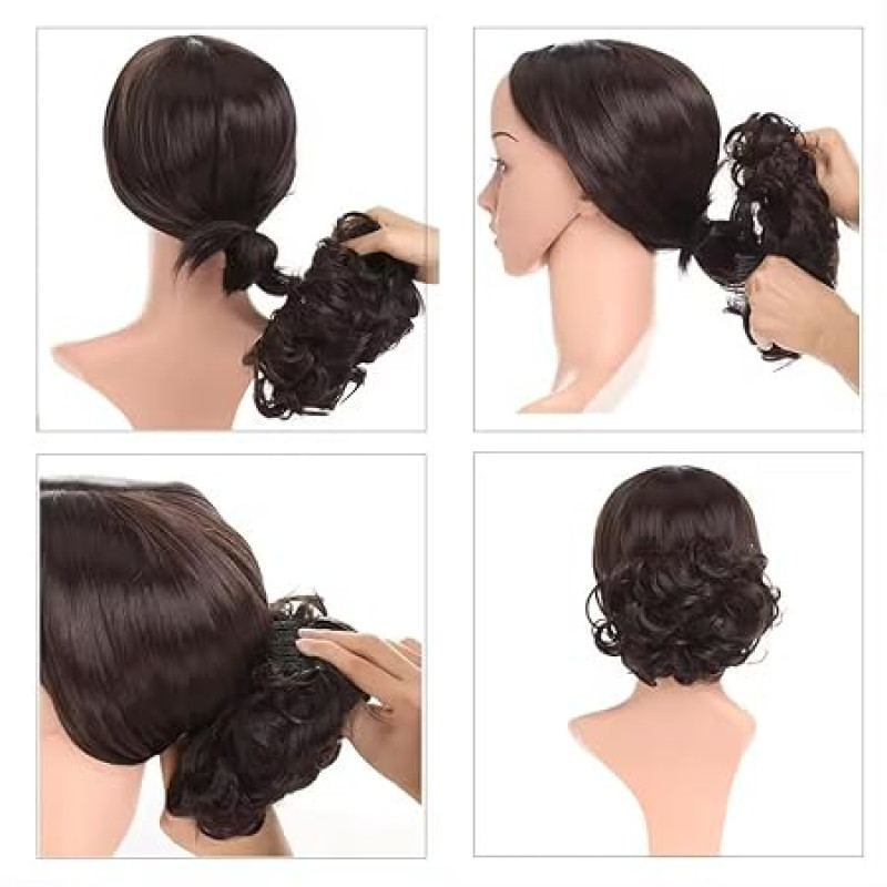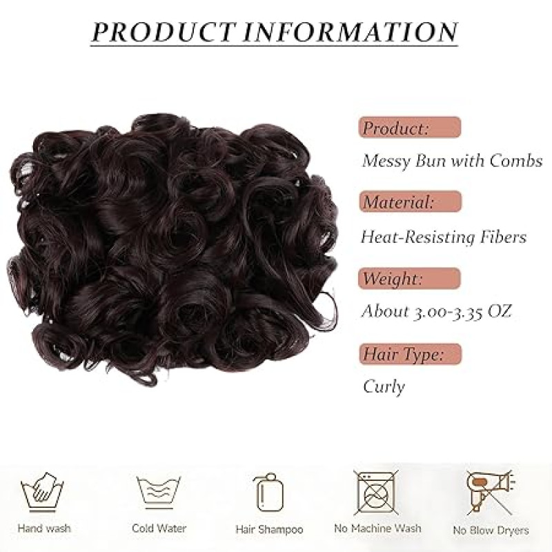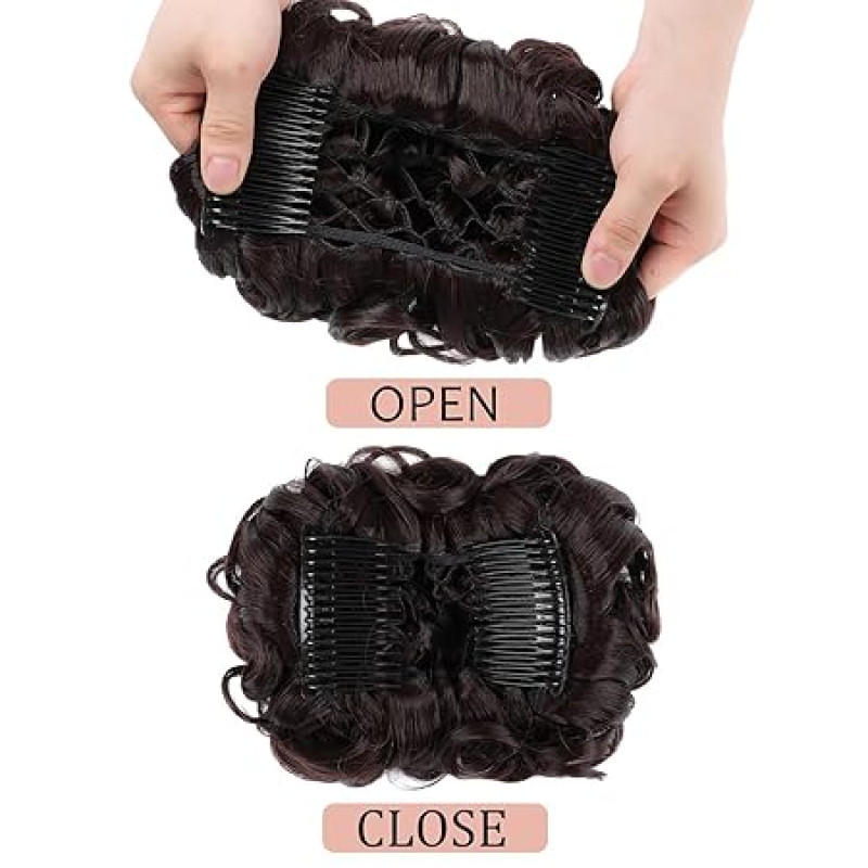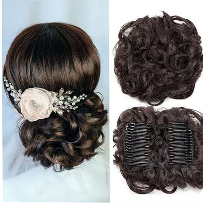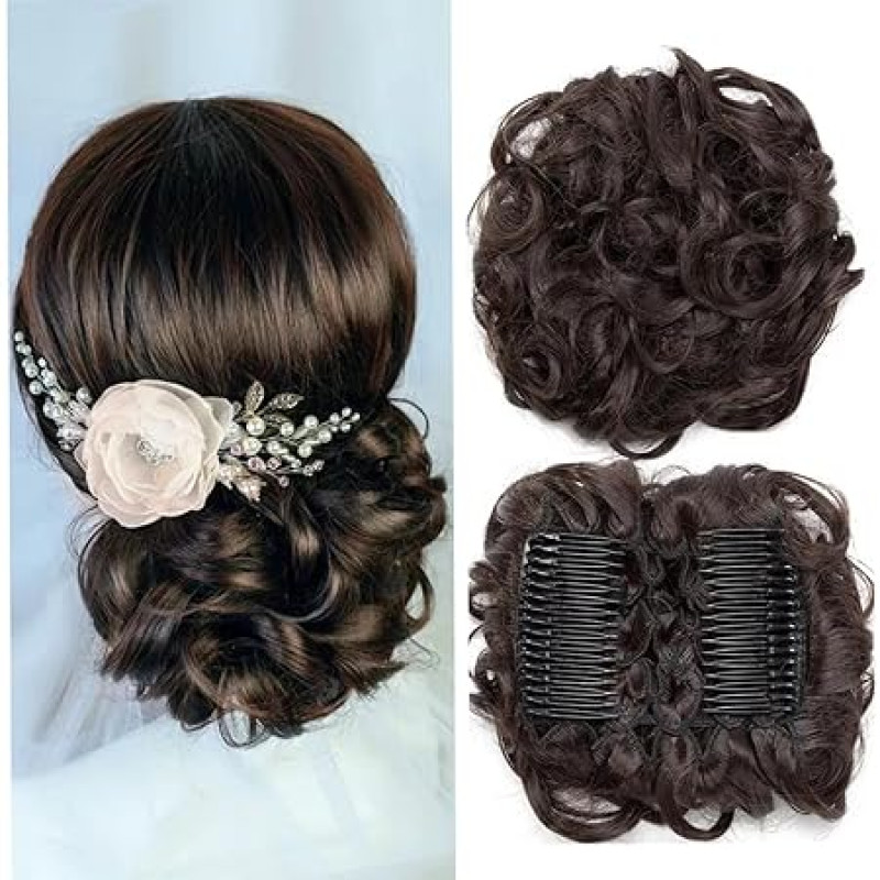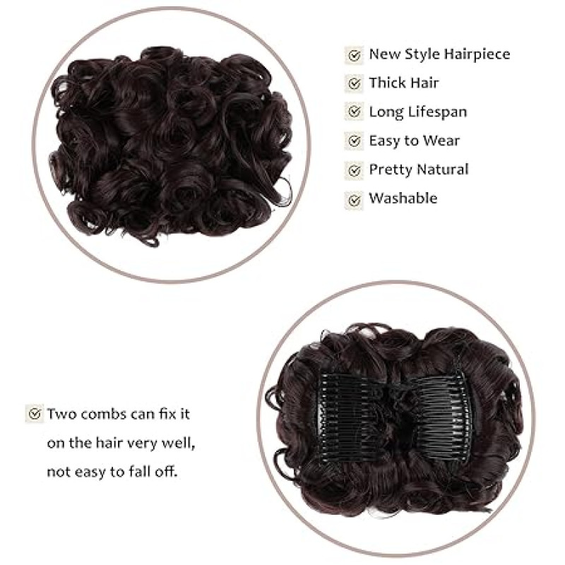 Short Double Combs Messy Curly Wavy Hair Extensions Bun Piece Up Do Drawstring Ponytail Clip in Comb Hair Extensions Chignon, Brown Color