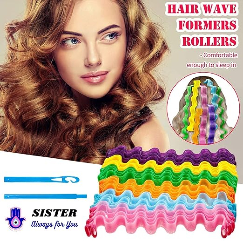 Sister 12 Pieces Heatless Hair Waves Curlers Spiral Curls Styling Kit No Heat Hair Curlers Waver Spiral Curlers Hair Rollers With 1 Piece Styling Hook For Most Hairstyles (30 Cm)
