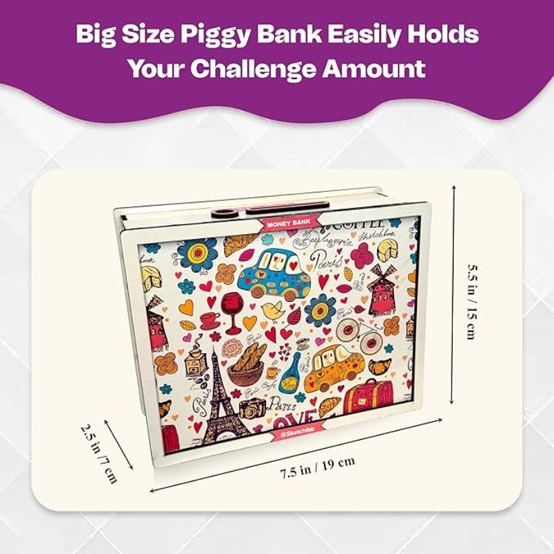 Sketchfab Money Saving Box for Adult 100000, Wooden with Savings Tracker Bank Kids, Smart Piggy Bank, Box, Coin Box,Gullak Saver,Piggy Rs100000 Home Deal Gift Man, Women (Printed Cream)