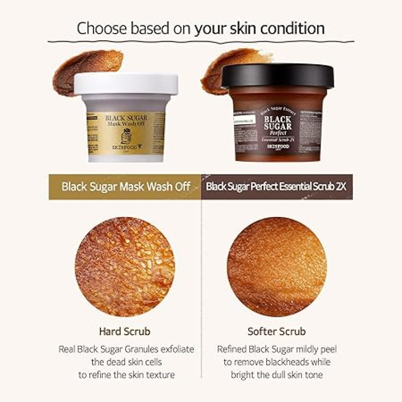 SKIN FOOD since 1957 Skinfood Black Sugar Perfect Essential Scrub 2X I Deep Cleansing I Radiant Glow I Gentle Exfoliating I Pore Minimisng | 210G