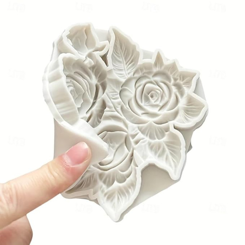 Skytail Rose Fondant Mold 3D Flower Leaves Shape Molds for Candle Soap Making Resin Crafting Cake Dessert Decoration Chocolate Sugarcraft Gum Paste Cupcake Topper Candy Clay Craft Molds