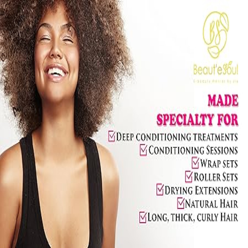 Soft Bonnet Hooded hair dryer Attachment for Natural Curly Textured Hair Care| Drying,Styling,Curling,Deep Conditioning Mask Cap| Upgraded Soft Adjustable Large hood bonnet for Hand Held Dryer