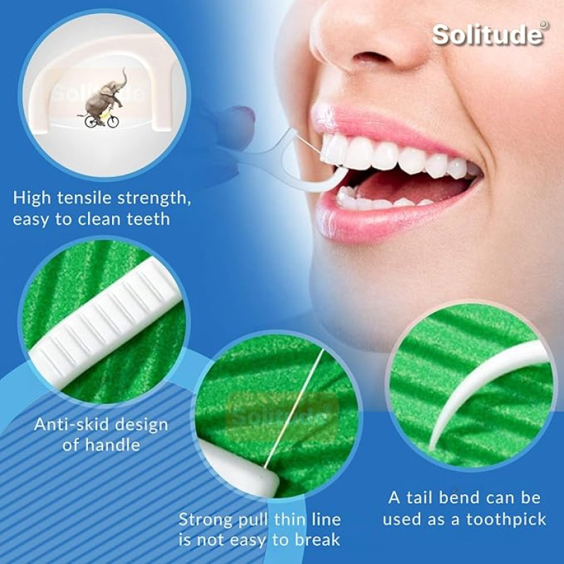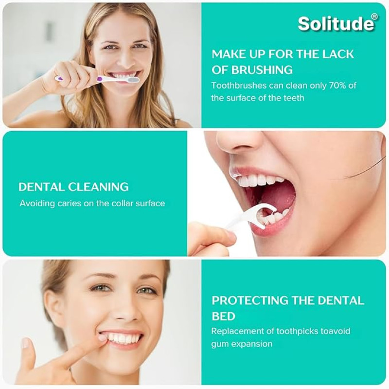 Solitude 50 Pieces 3 in 1 Tooth Cleaning Dental Floss Fresh Toothpick Cleaners, Disposable Teeth Flossing Thread Toothpicks with tongue cleaner Stick for Fresh, Healthy and Breath Gums