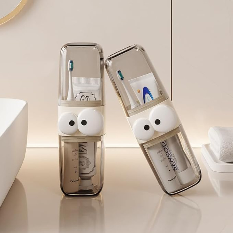 SPRADE Polycarbonate (PC) Portable Tooth Brush Case Cover Travel Wash Cup Teeth Cleaning Accessories Storage Holder Electric Toothbrushhigh Beauty Three-In-One Travel Gargle Cup (1 Brown)