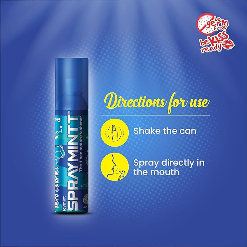 Spraymintt Mouth Freshener | Mukhwas | 175+ sprays of instant long lasting with Zero Calories Freshness | Icymint flavour + Brezeberry flavour | 15g - Combo of 2