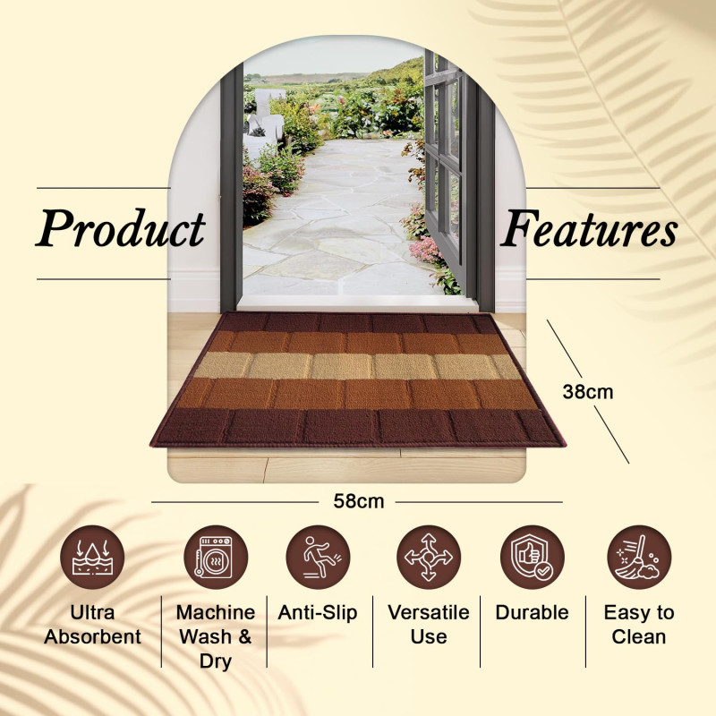 Status Contract Anti Slip Front Door Mat|(38x58cm) Living Room Rug for Entrance Door|Polypropylene Floor Mat for Home|Essential Small Rug for Office, Bedroom & Kitchen| (Brown), Rectangular