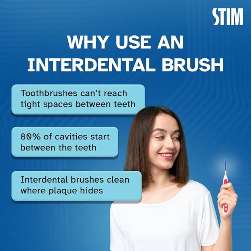 STIM Interdental Flexible Interdental Brush | 10 Brushes | Size: ISO - 2 For Narrow Gaps, Deep Cleaning Between The Teeth - Pack of 1