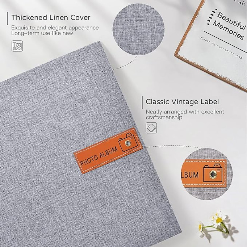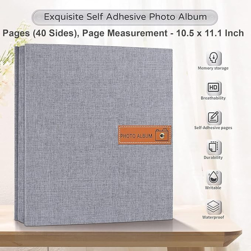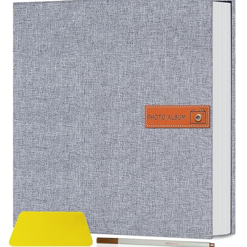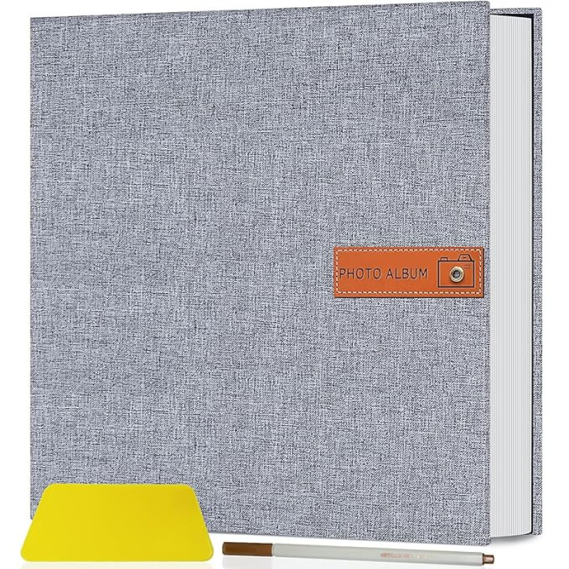 Store2508 Photo Album Self Adhesive 20 Sheets 40 Pages DIY Baby Memory Book for 4x6 8x10 Picture Linen Cover Scrapbook for Wedding with Scraper and Metallic Pen