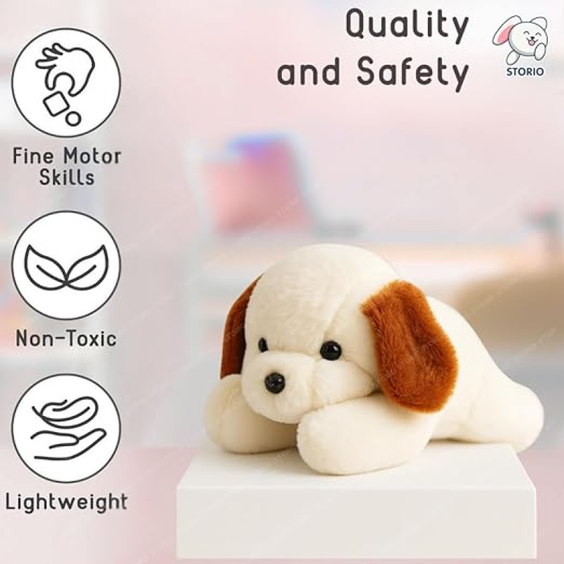 Storio Soft Plush Lying White Puppy Stuffed Animal | Kids Animal Home Decor for Boys & Girls Soft Dog Plush Toy - 25cm