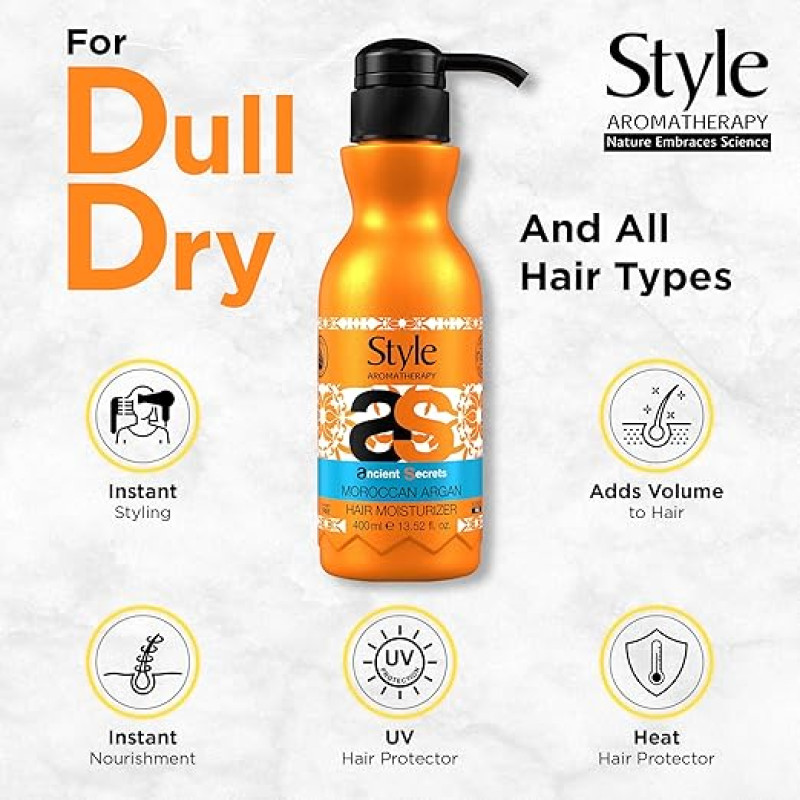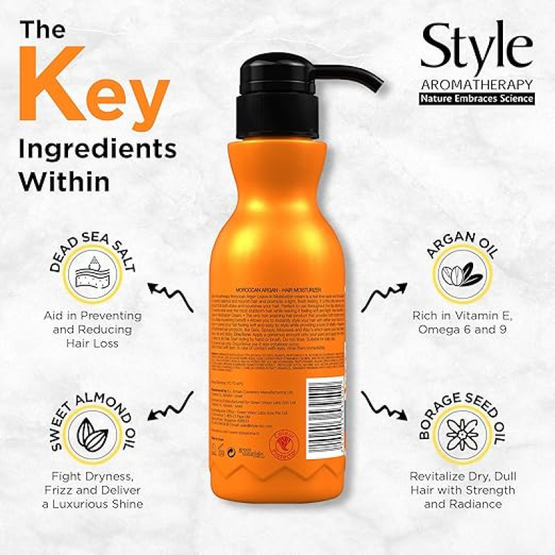 Style Aromatherapy Professional Moroccan Argan Leave-in Hair Moisturizer Hair Cream 400 ml | Morrocan Argan Treatment Cream For Dry, Damaged, Dull, Frizzy Hair