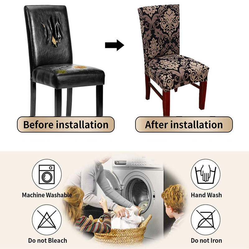 Styleys Polyester, Polyester Blend Stretchable Printed Washable Elastic Dining Chair Covers (SLMC123 Royal Black/Gold, Large) - Set of 6