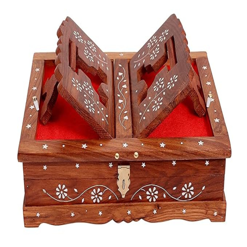 Stylish Art Maker Wooden Sheesham Handmade Book Box/Holy Book Reader/Book Holder Holy Book Stand Box for Quran, Ramayan,Bible, Gita, Ved & Guru Granth Sahib/Gift Option/Home Decor(Brown)
