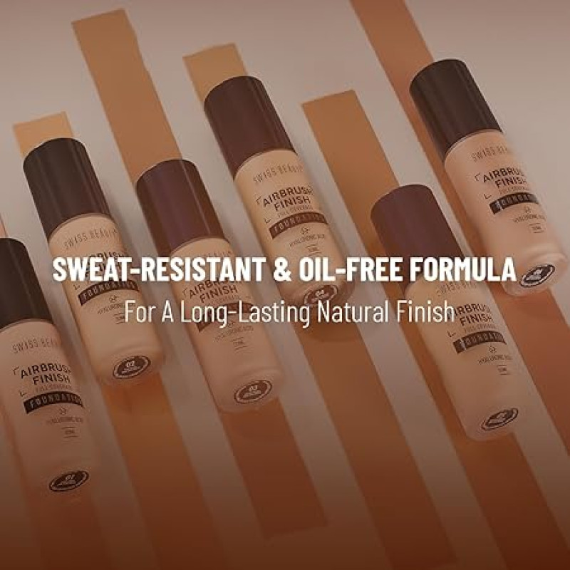 Swiss Beauty Airbrush Finish Full Coverage Foundation | Full Coverage Up To 8 Hours | Waterproof & Lightweight | Natural Matte Finish | Long-Lasting Wear | Enriched with Hyaluronic Acid | For All Skin Types | Dermatologically Tested | Shade- 05 Caramel Be