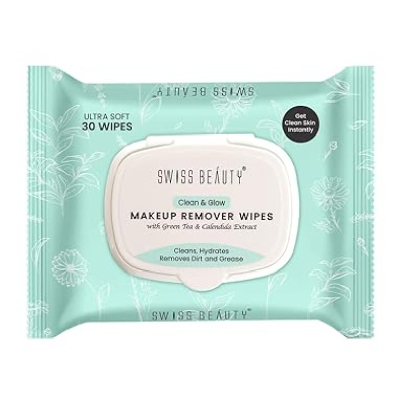Swiss Beauty Clean & Glow Makeup Remover Wipes | With Green Tea And Calendula Extracts| Cleansing And Hydrating Facial Wipes| 30 Wipes