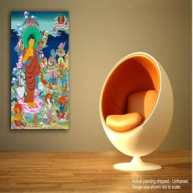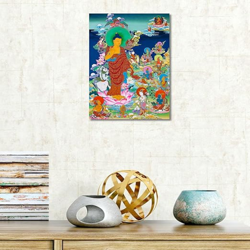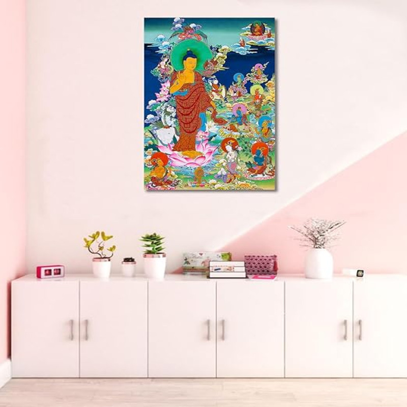 Tamatina Thangka Canvas Painting | Lord Buddha on Lotus | Buddhism Art| Traditional Art Painting for Home décor|Size - 13X9 Inches.h462