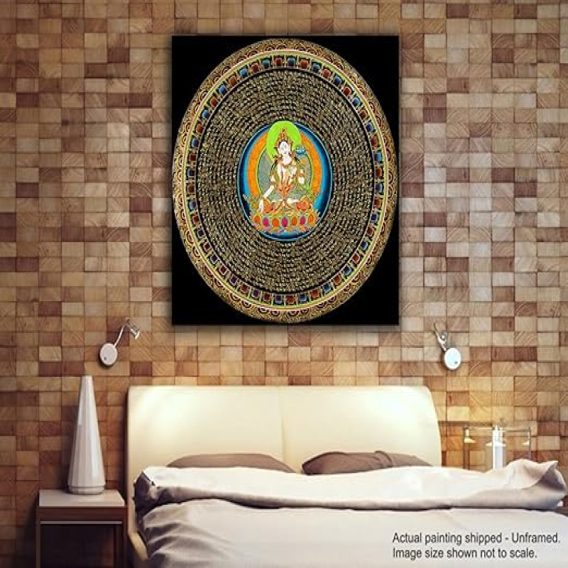 Tamatina Thangka Canvas Painting - Traditional Art - Goddess Tara In A Golden Sky - Tribal Paintings