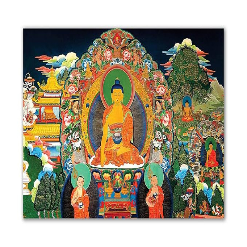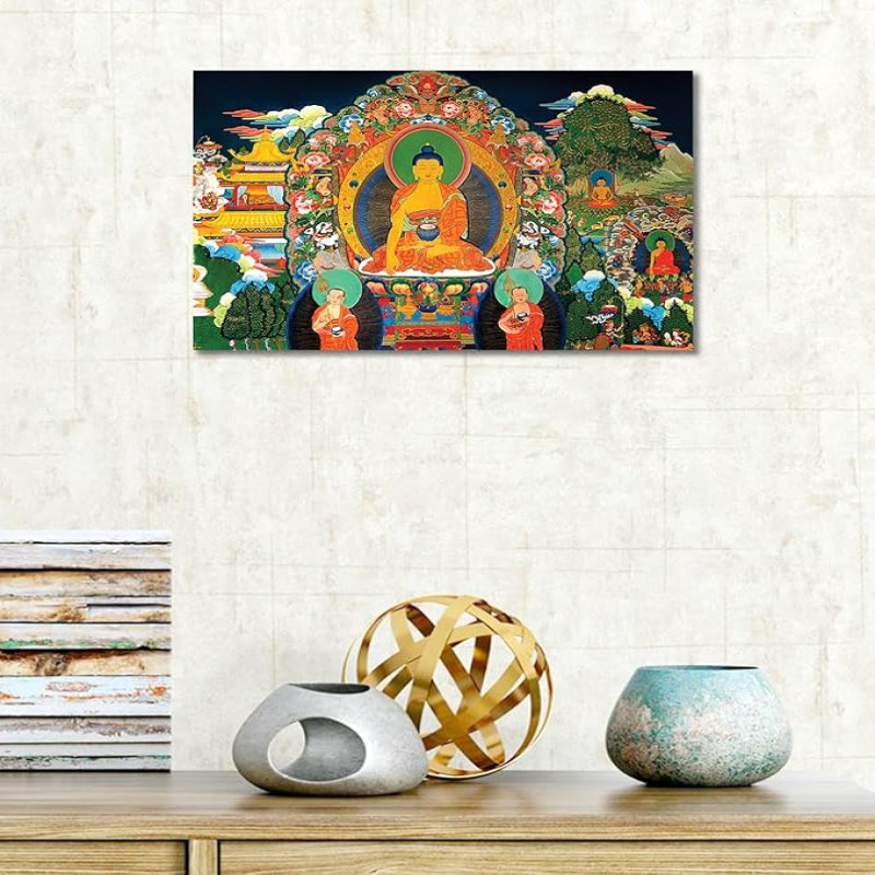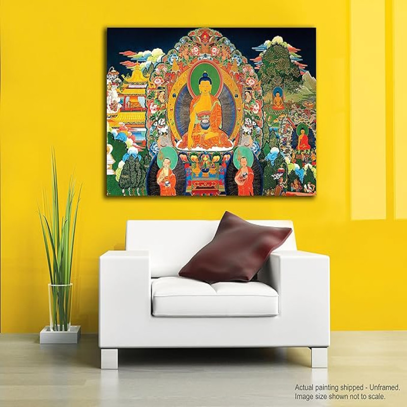 Tamatina Thangka Canvas Painting|A View of Buddha's Life|Buddhism Art|Size-13X9 Inches.h405