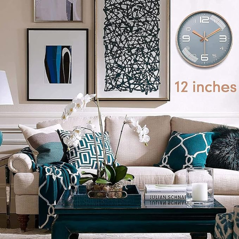 TEKCOOL Wall Clock 12" Silent Quartz Decorative Latest Wall Clock Non-Ticking Classic Clock Battery Operated Round Easy to Read for Room/Home/Kitchen/Bedroom/Office/School - Analog, Plastic Grey Gold