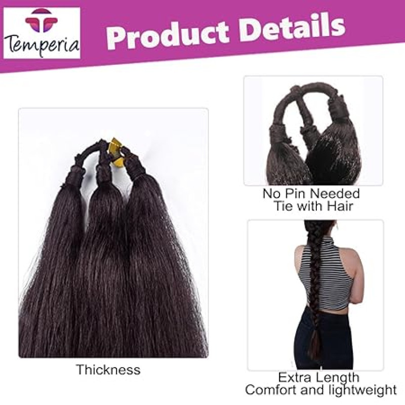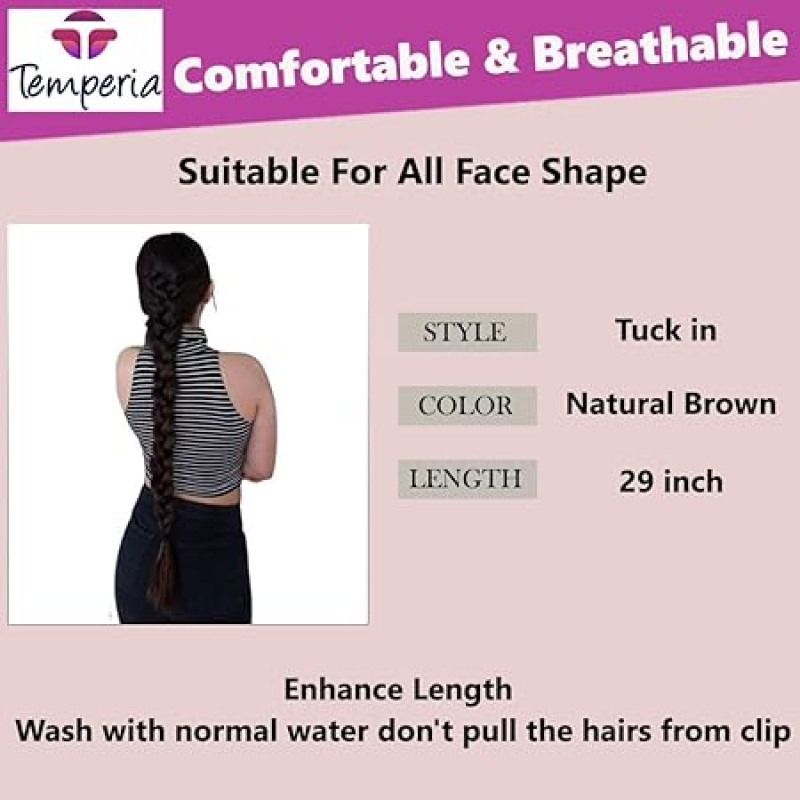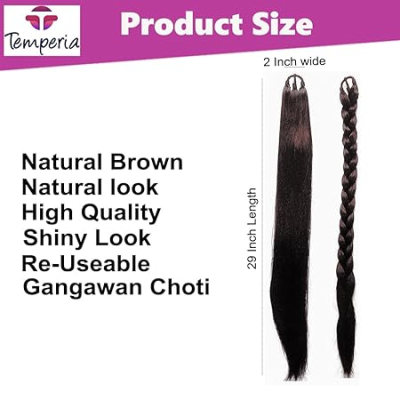 Temperia Artificial Fake Long Extensions Hair for Women & Girls - Savaram Gangawan Cataram Sadaraa Paranda Choti False Nakli Hair Wig - Extra Hair Braid Attachment for Ladies - Natural Brown