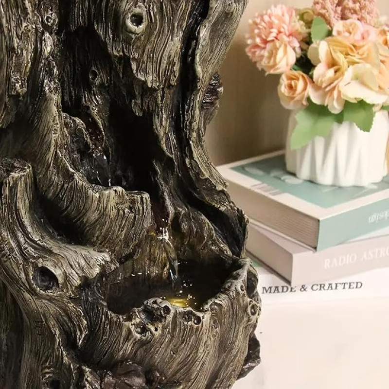 The Artment Mystic Canopy Rainforest Tree Trunk Shape Indoor Table Top Showpiece for Living Room, Office, Home Decor Waterfall Fountain with LED Lights | 14 Inch, Grey