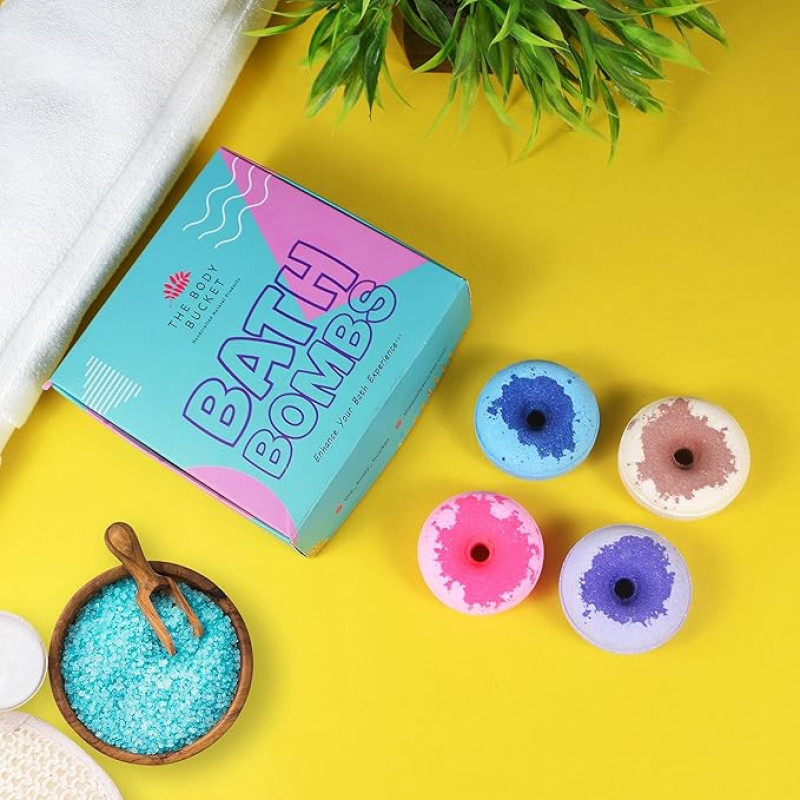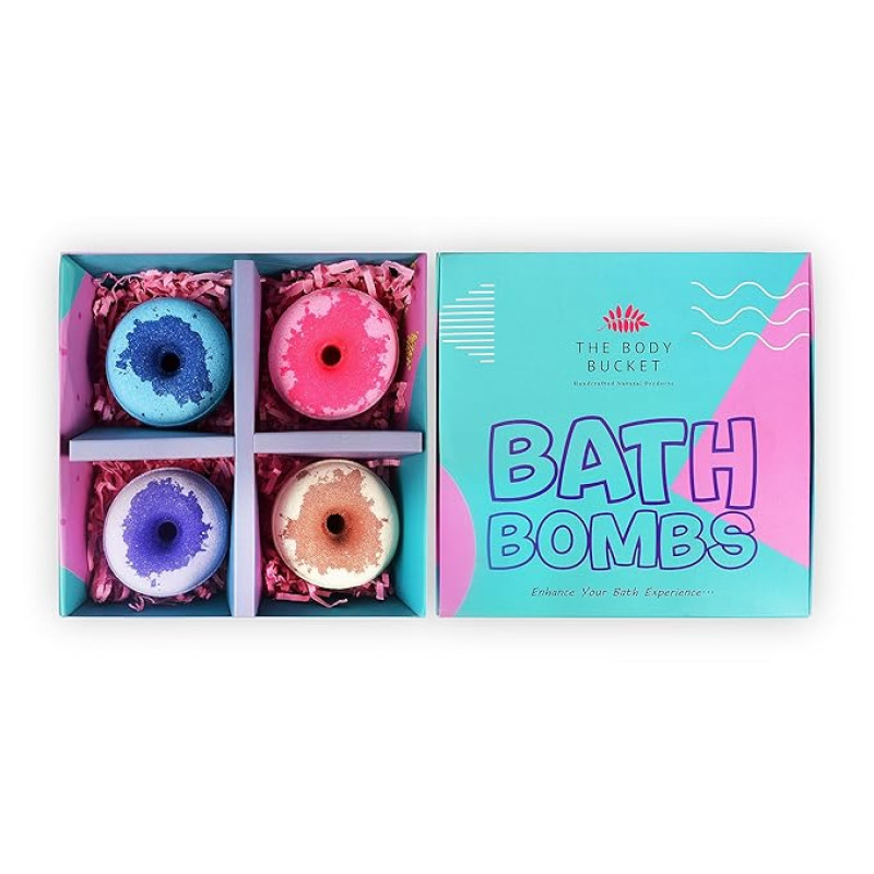 THE BODY BUCKET - Aqua, Rose, Lavender & Vanilla Donut Bath Bombs | All Natural Handcrafted with Aromatic Fragrance - Bath Gift for Kids, Men & Women– 65 gm each (Pack of 4)