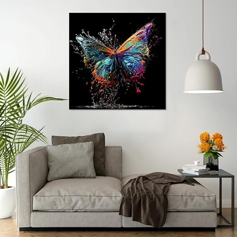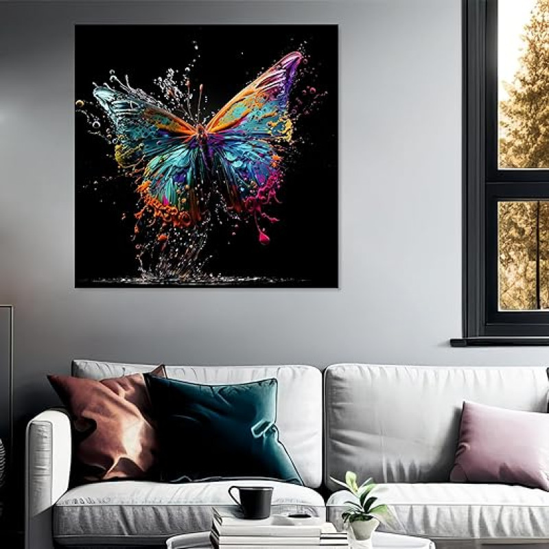 The Castle Decor Butterfly Painting with Frame Big Size (24X24) Wall Art for Living Room, Bedroom, Drawing Room, Hotels-Wooden Framed-Digital Painting