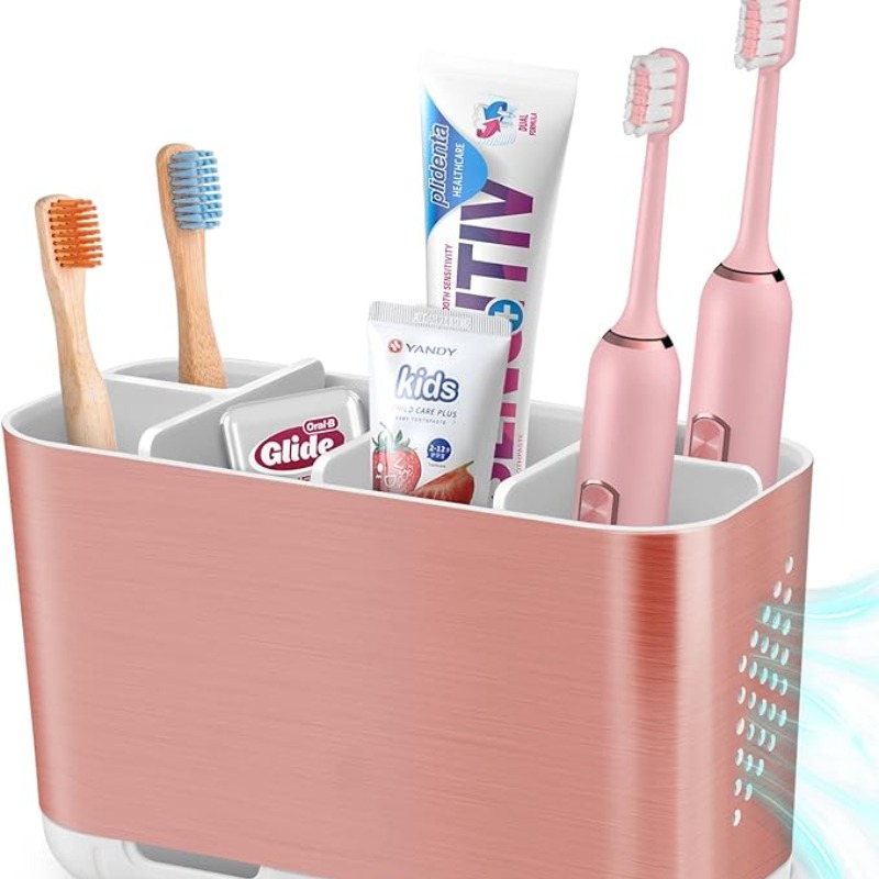 Tooth Brush Holder for Bathroom Organizer and Storage, Toothbrush Holder and Toothpaste Stand for Tongue Cleaner Comb Razor Shaving Kit and Toiletries Makeup Brush Holder, Bathroom Accessories Set