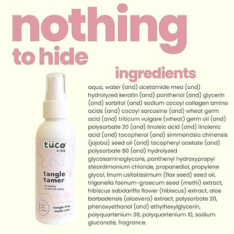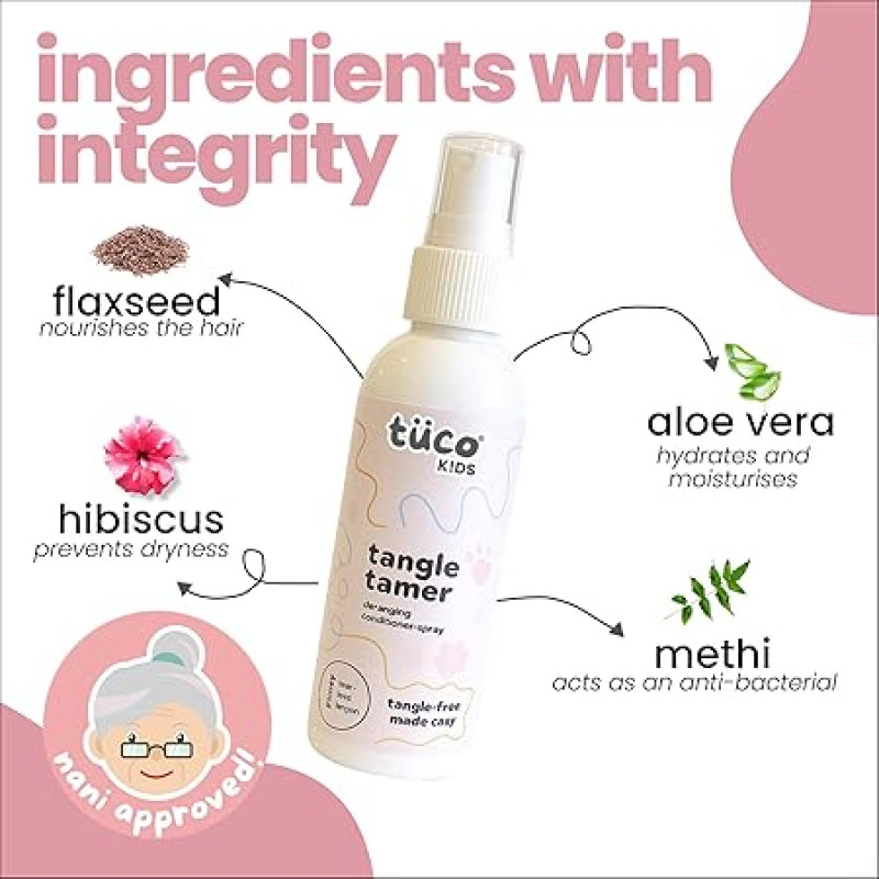 Tuco® Kids Tangle Tamer Hair Detangler Spray | Infused with Aloe Vera, Flaxseed & Methi | Ages 2-5, 4-10, 10-15, 5-10 Years | Paraben & Sulphate Free |100ml