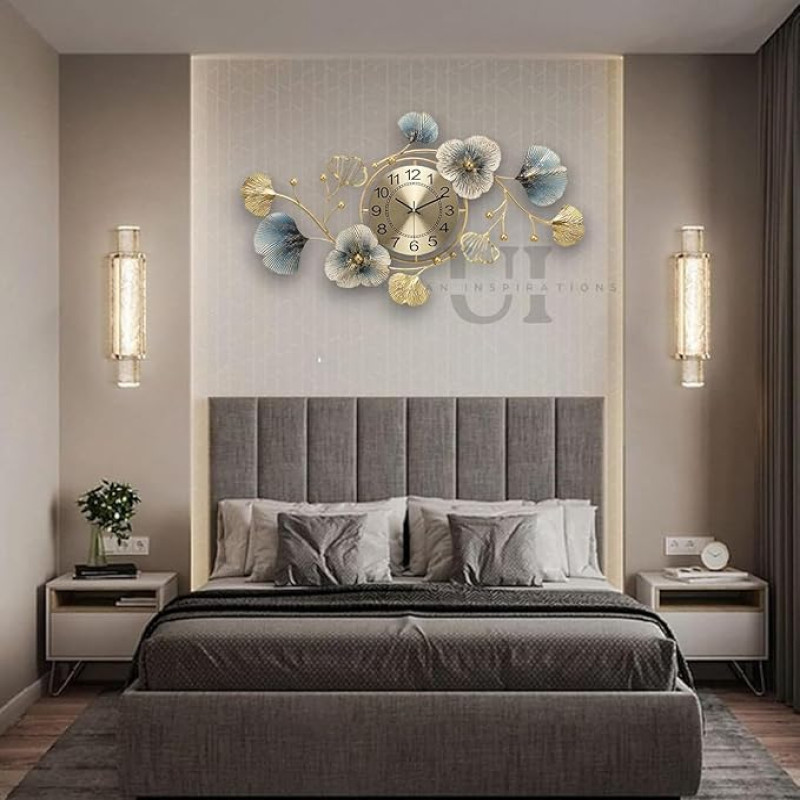 URBAN INSPIRATIONS Metal Wall Clock Big Antique Decorative Home Interior Stylish Watch & Silent Machine Gold for Bedroom/Living Room- 70CM,Analog