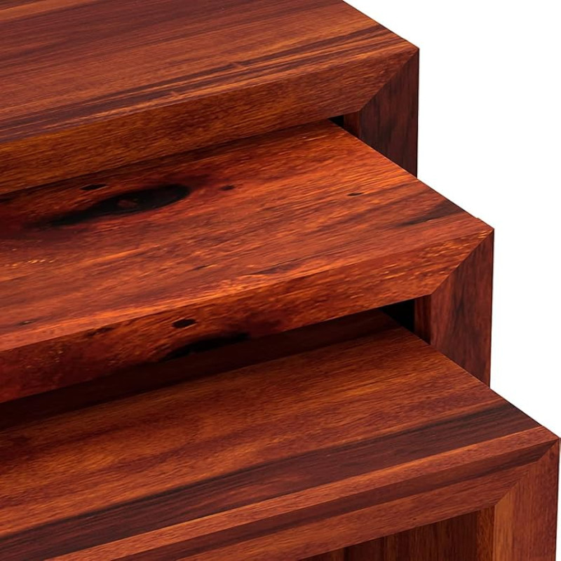 URBAN WOODS Nidium Nesting Table Set - Sheesham Wood, Honey Finish - Versatile and Space-Saving Furniture Trio for Stylish Home Interiors for Functional Living Spaces
