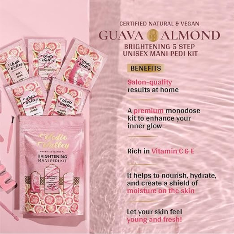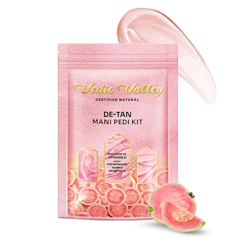 Vedic Valley Manicure Pedicure Kit Repairs Cracked & Dry Heels With Organic Actives, Removes Dead Skin, Tan for Deep Moisturization, Foot Peeling Mask, Cream & D-tan Scrub for Women & Men Guava- 75 gm