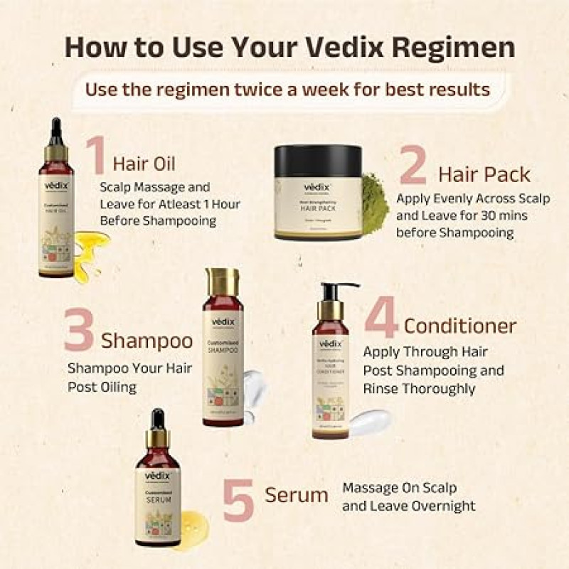 Vedix Ayurvedic Hair growth Kit | 5 product Kit | for Normal Hair, Dry Scalp, Wavy Hair | Vedix Hair Oil, Shampoo, Serum, Mask, Conditioner Set