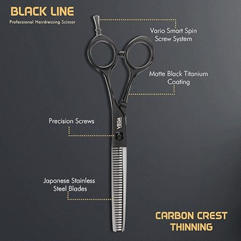 VEGA PROFESSIONAL Carbon Crest Thinning Black Line Hairdressing Scissor, (VPPSC-08)