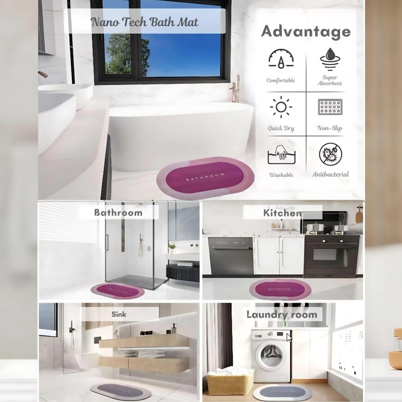 VERVENIX Pack of 2 Quick-Dry Anti-Slip Bathroom Mat | Non-Slip Rectangular Doormat | Bathroom Print Water-Absorbing Rubber Mat for Bathroom, Kitchen, Office, Living Room – Random Color