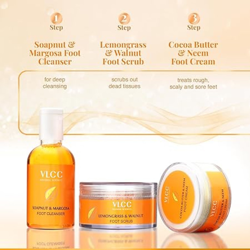 VLCC Pedi Glow Foot Care Kit - 100g + 200ml | Keeps Your Feet Clear, Soft, and Smooth | A Combo of Foot Cream, Foot Scrub, Foot Cleanser, and Foot Spray. |