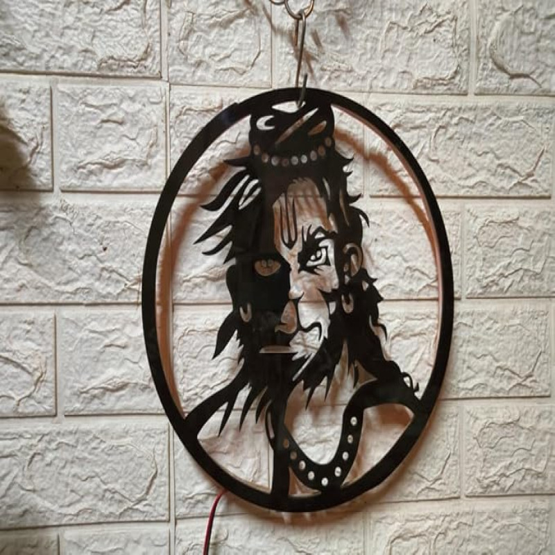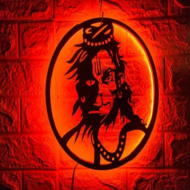 Wall Mitra Lord Hanuman MDF Wood Backlit Wall Art With LED Light For Living Room - Hanuman Ji Wall Decor, Wall Art For Home Decorations(Orange) 12x12