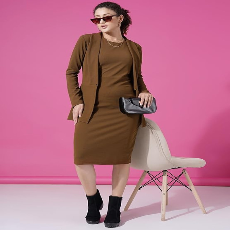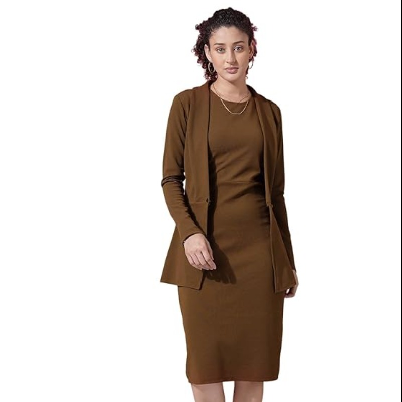 Western Dress for Women|Solid Lycra Western Dress for Women|Round Neck Shrug with Bodycon Dress for Women|Two Piece Knee-Length Dress for Women