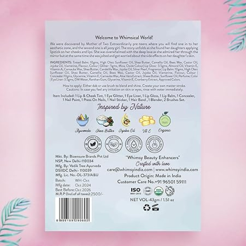 Whimsy Beauty 13-Piece Safe & Organic Unicorn Travel Beauty Kit for Girls, Preteens & Teens | Water-Washable Makeup Set with Lip Balm, Lip Cheek Tint, Lip Gloss, Eye Glitter, Nail Polish & Brushes