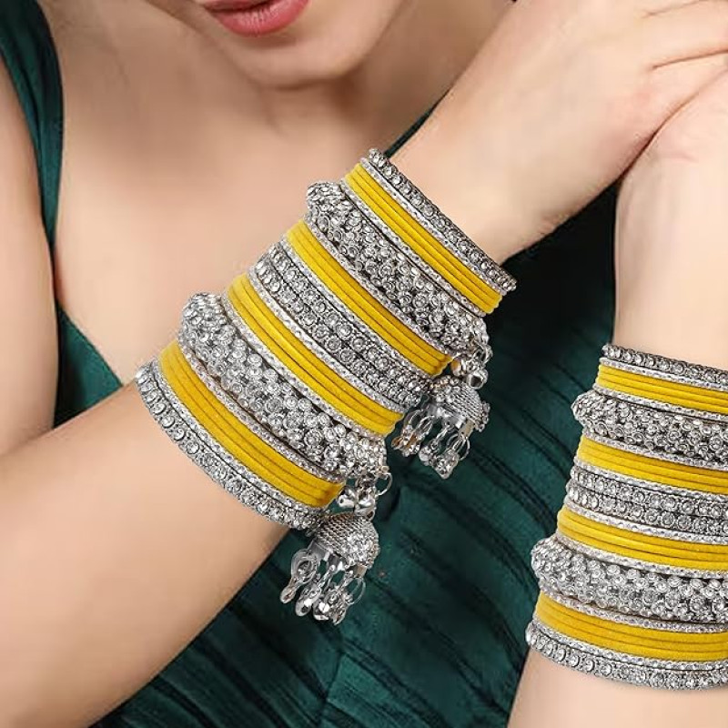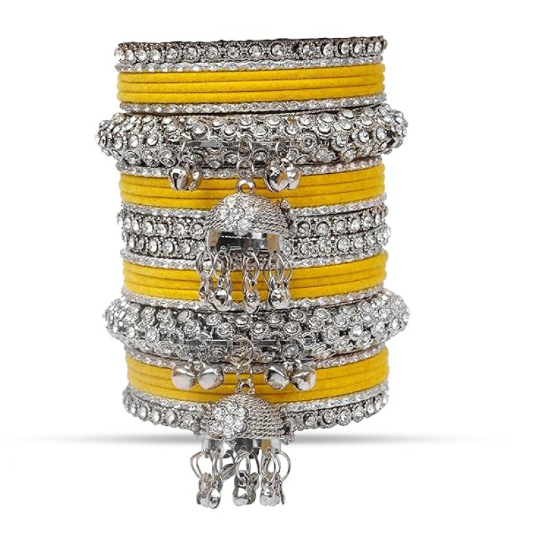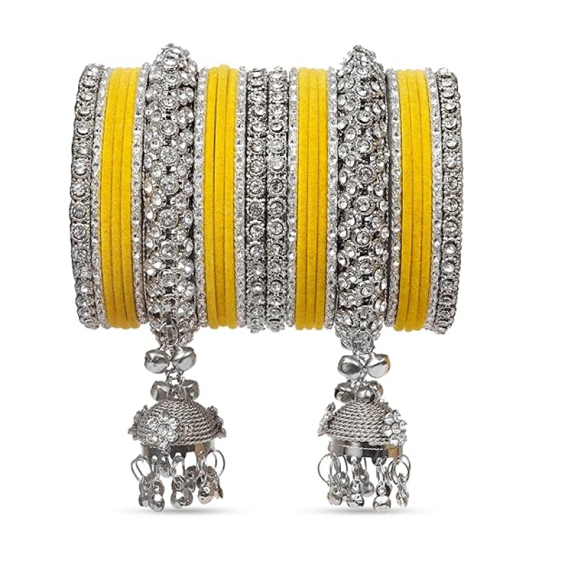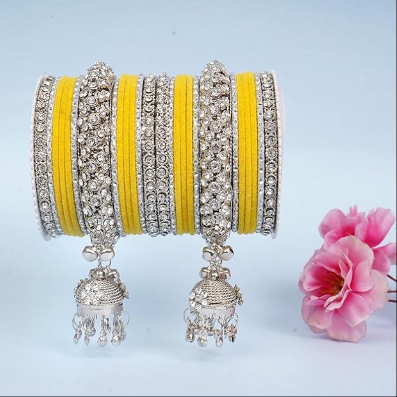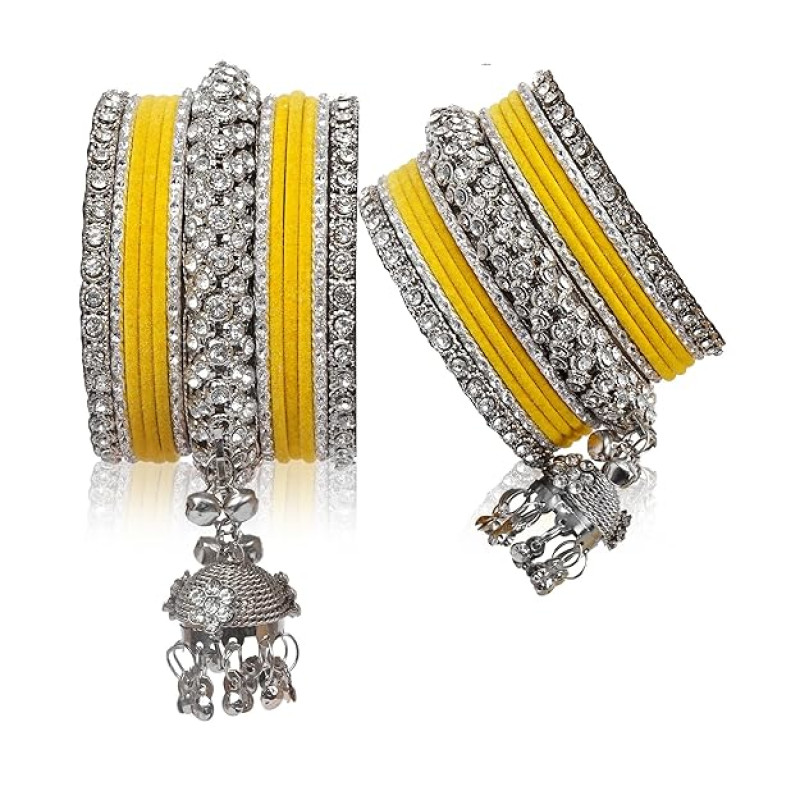 Women's Alloy Gold Plated with Jhumki Fashion Antique Stones Wedding | Bridal| Anniversary Gift Brass Bangles Set