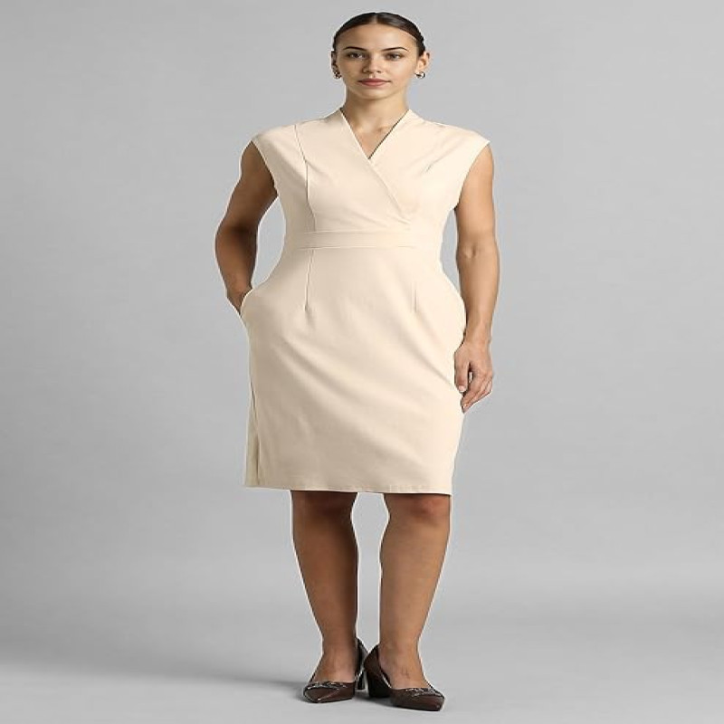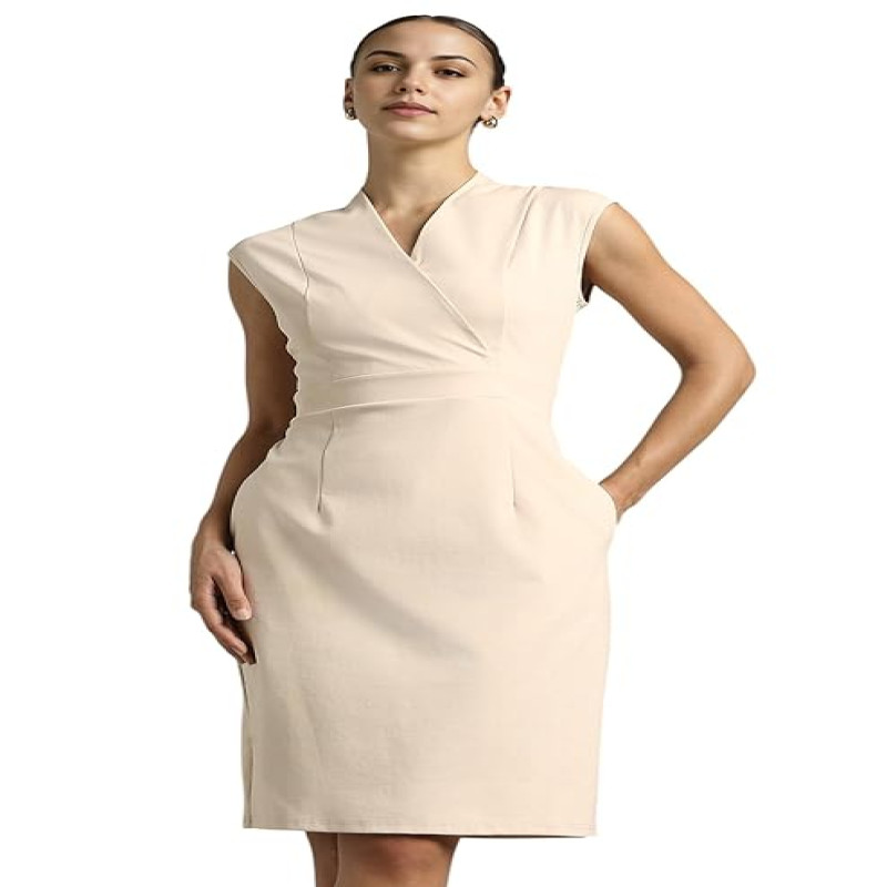 Women's Cotton Blend V Neck Mid-Length Sheath Comfort Fit Above The Knee Dress
