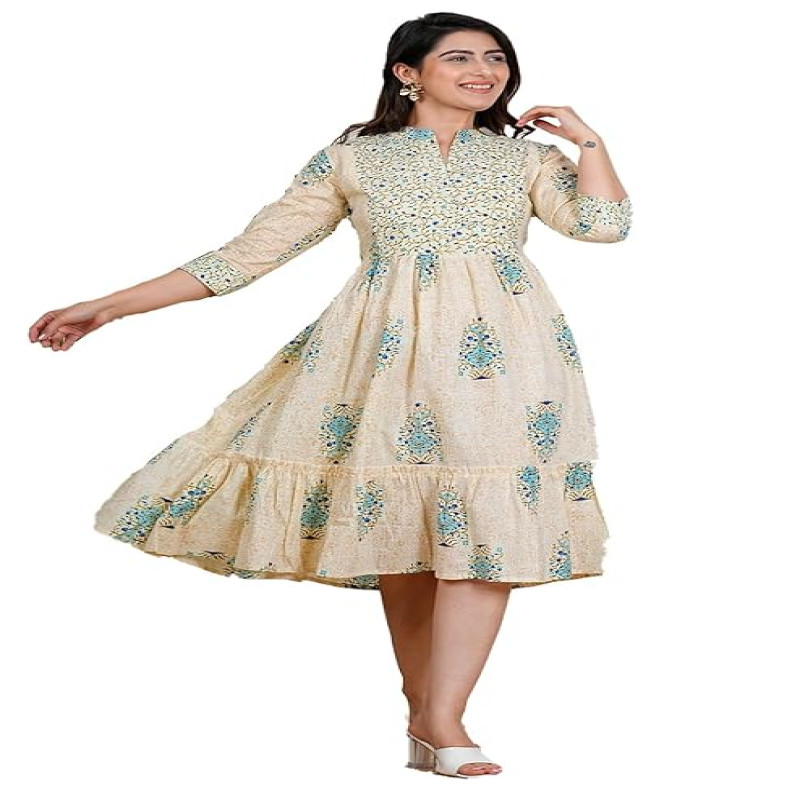 Material: Cotton || product length: 44 inches || in box: 1 Anarkali Frock Kurta Style and pattern: Anarkali Frock Kutra Floral Print || neckline : Round Neck || sleeves: Albow Length sleeves Comfortable fit | Soft and breathable Fabric | Bright happy colours to cheer any mood. Crafted from a breathable fabric for unparalleled comfort and sophistication Jaipuri Print Frock Stylish pattern perfect for both office and a day out daily wear, very comfortable and soft fabric quality Jaipuri Girls women's kurti. Color Declaration : There Might Be Slight Variation In The Actual Color Of The Product Due To Different Screen Resolutions. Occasion: suits in spring summer. Dating, party, evening, casual, travel, home, office, vocation, Night out and Gifting. Best worn in any party, festivals, casually in college, hang outs for elegant and smart look. |