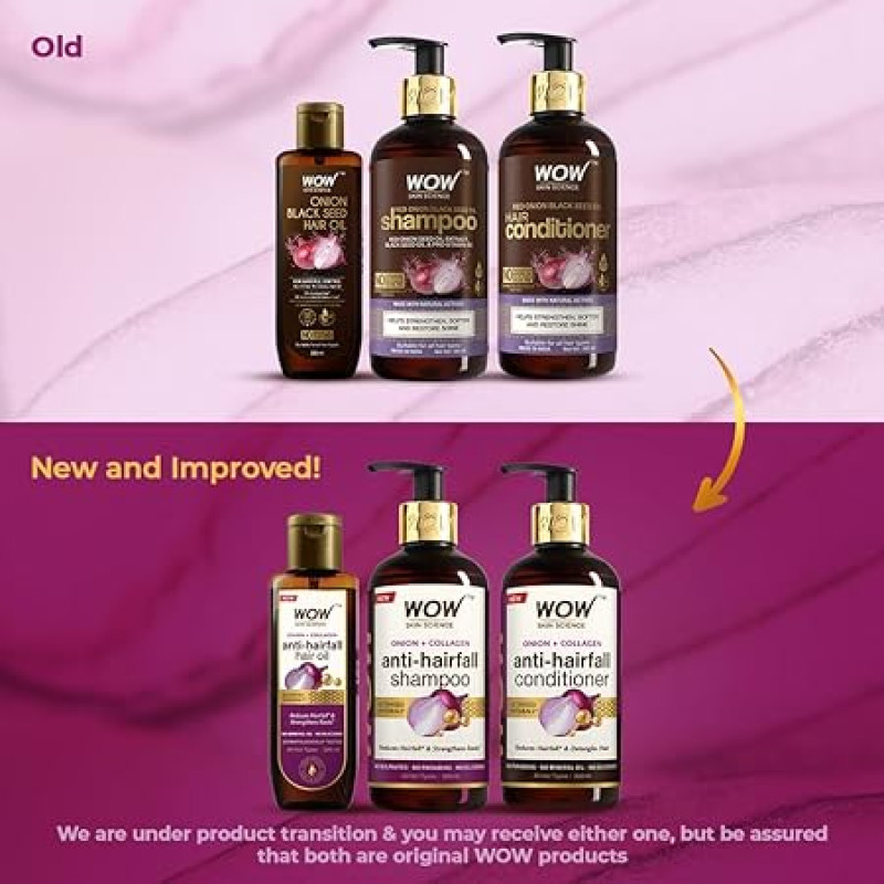 WOW Skin Science Ultimate Onion Oil Hair Care Kit for Hair Fall Control - Shampoo 300ml + Conditioner 300ml + Onion Hair Oil 200ml