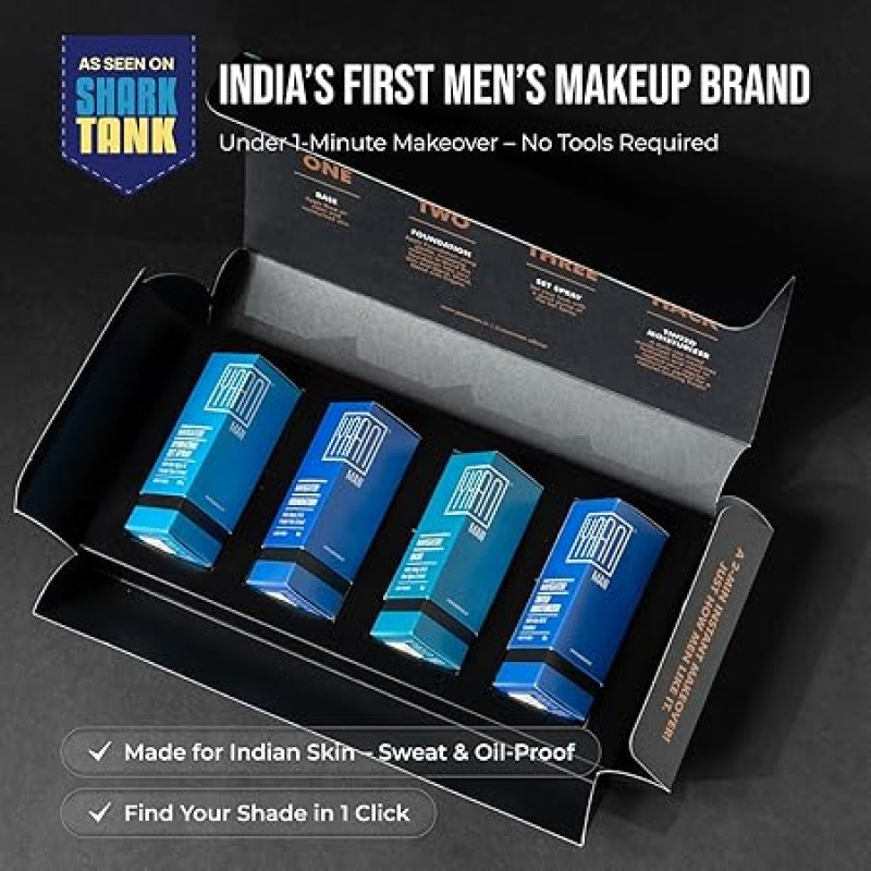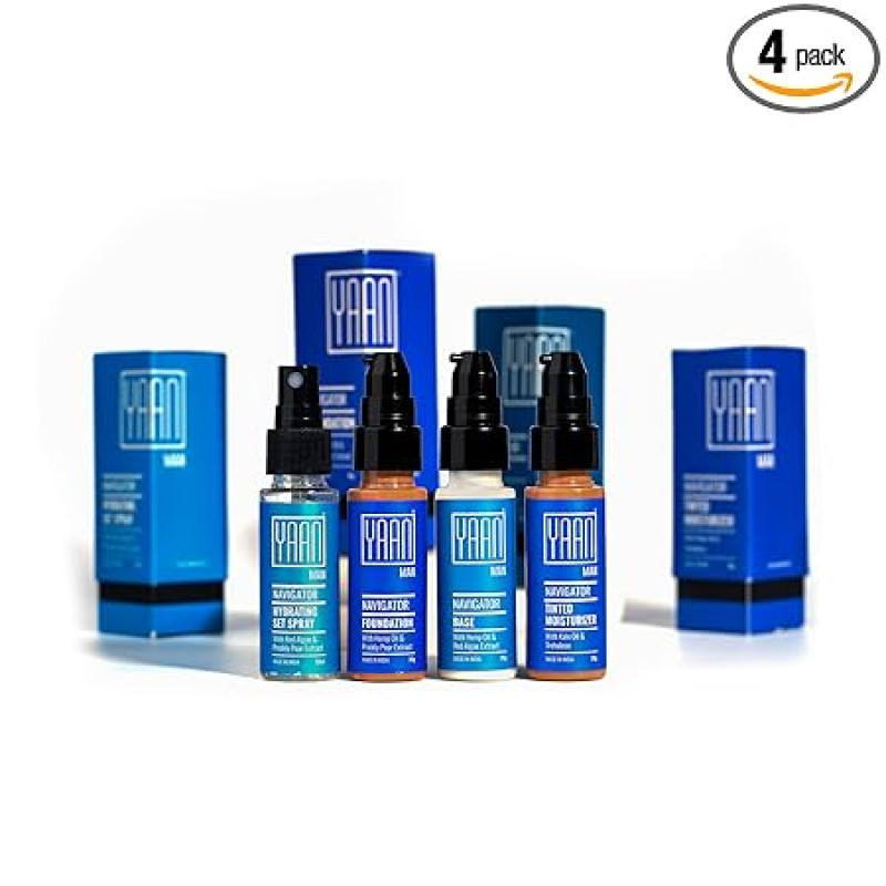YAAN MAN Navigator Range | Make Up For Men | Contains: Base, Foundation, Set Spray, Tinted Moisturizer| Light Weight, Invisble On Skin | For All Skin Types (Medium), 4 count