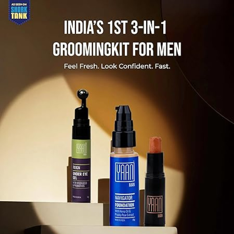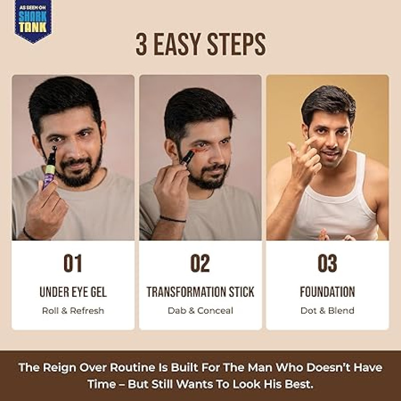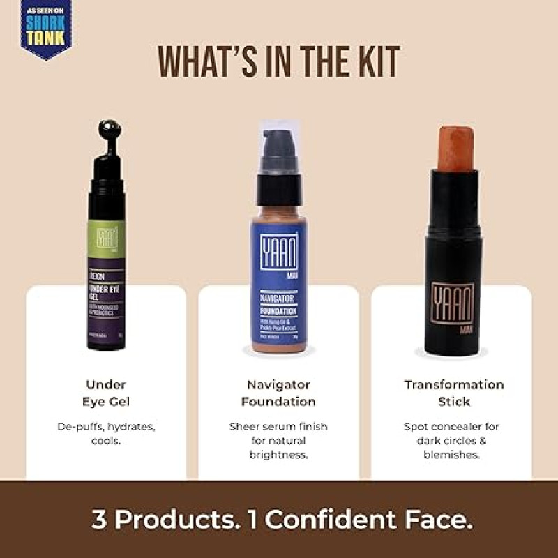 Yaan Man Reign Over Makeup Combo Set, Foundation, Under Eye Gel, Transformation Stick (Dark)