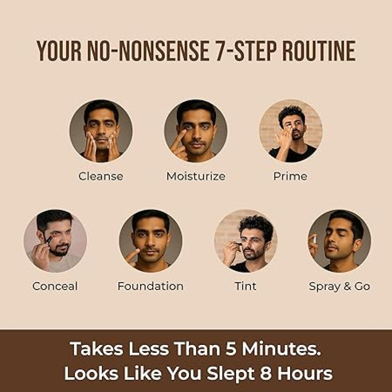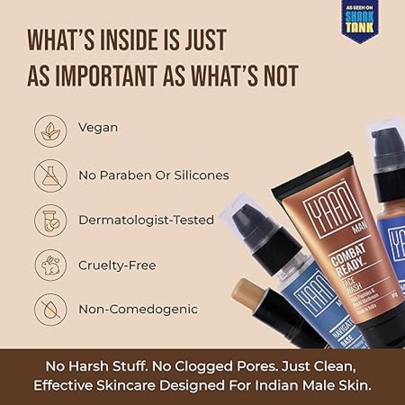 YAAN MAN Ultimate Set |Base, Foundation, Set Spray, Tinted Moisturiser, Face Wash, Gel Moisturiser, Perfection Stick | Skin Care + Make Up For Men | For All Skin Types | Light Shade, (7 Count)