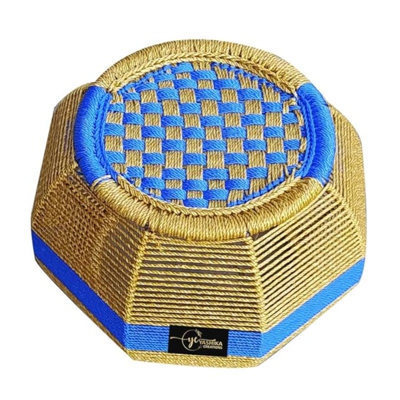 YASHIKA CREATION Handmade Bamboo Cane Bar Stool Mudda Chair, Natural Indoor Outdoor Furniture, Lightweight & Durable, Multi-Functional, Suitable for Home, Garden, Balcony (Pack of 1, Blue)