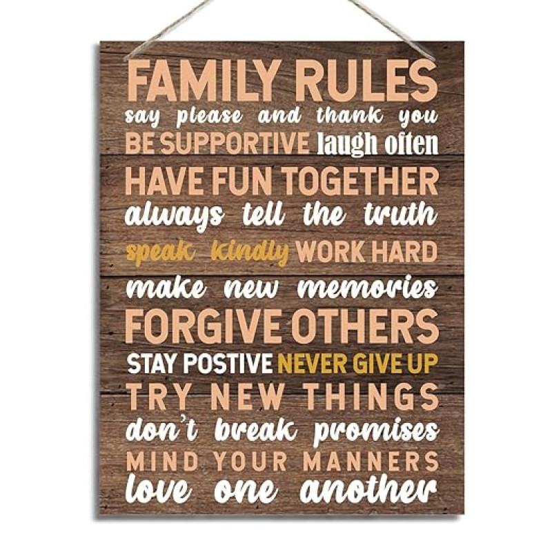 ZPPRJF Family Rules Sign, Inspirational Wooden Wall Plaque, Brown, Rustic Style, Small